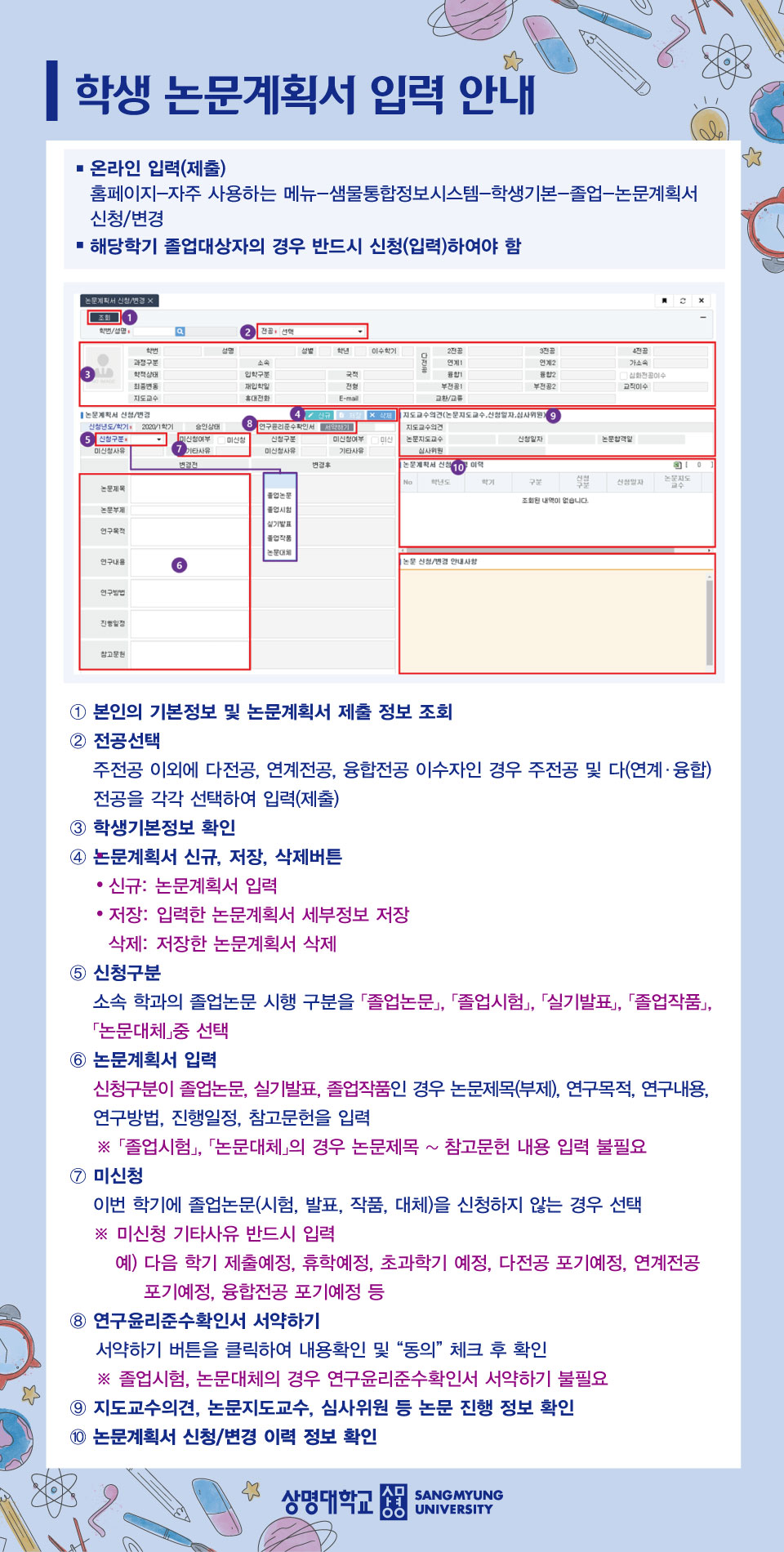 3. 제출(온라인 신청) 방법: [붙임] '학생 논문계획서 입력 안내' 참고